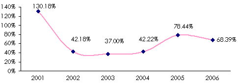 | 2001 | 2002 | 2003 | 2004 | 2005 | 2006 | |
