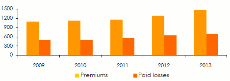 Premiums:2009-2013in millions USD![]() | Paid losses: 2009-2013in millions USD![]() |