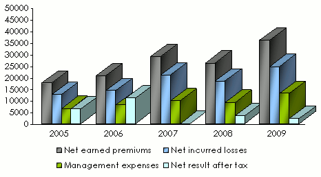 Evolution of premiums, losses, management expenses and results
