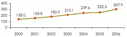 in millions USD| Classes | 2000 | 2001 | 2002 | 2003 | 2004 | 2005 | 2006 |