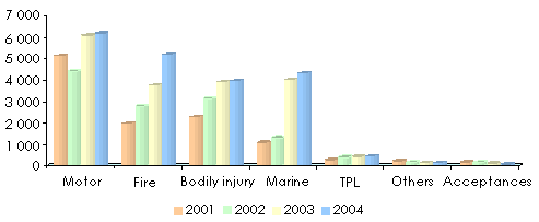 Non-life turnover evolution by class of business: 2001-2004