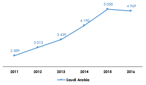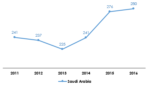 Saudi Arabia : evolution of health insurance premiums (2011-2016)
