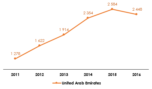 Saudi Arabia vs United Arab Emirates : evolution of turnover (2011-2016)