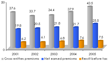 in millions USD| 2001 | 2002 | 2003 | 2004 | 2005 | |