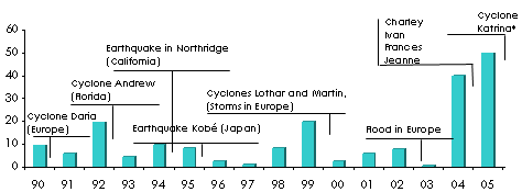 Cost of the major natural catastrophes 1987-2005*