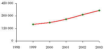 in thousands USD| Branches | 1999 | 2000 | 2001 | 2002 | 2003 |