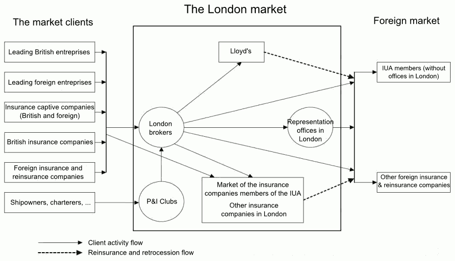There are two facets to the activities of the London market: the British risks and the risks of the London market, among which are the marine and aviation insurance and reinsurance and the direct insuring of the risks abroad.