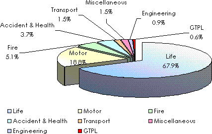 Premiums split by class of business in 2005