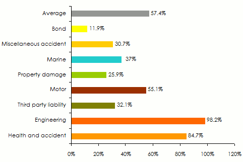 Loss ratio per class of business in 2012