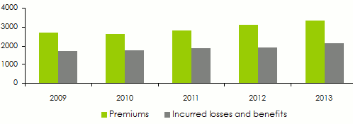 Evolution of premiums, incurred losses and benefits: 2009-2013