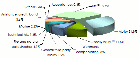 (1)includes health and maternity (2) includes ordinary, group and industrial life assurance, capitalisation and variable life assurance