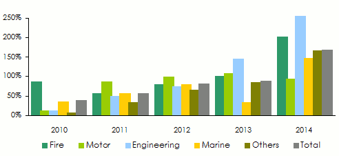 Evolution of net loss ratios per class of business: 2010-2014