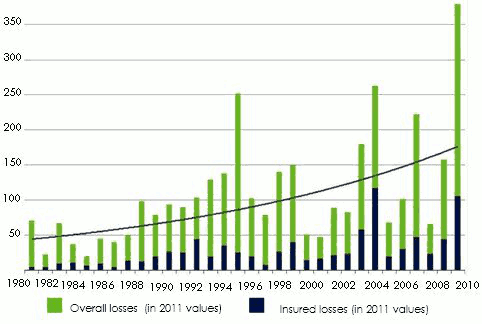 Overall losses and insured losses: 1980-2011