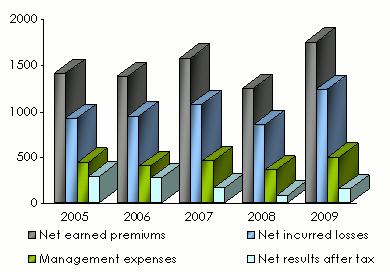 Th turnover's evolution of the Group per class of business: 2005-2009
