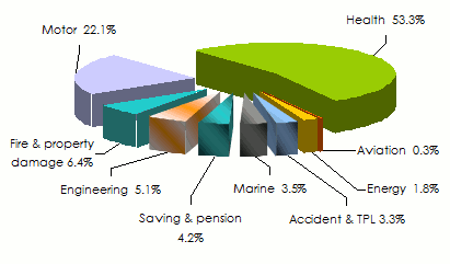 Breakdown of premiums per class of business in 2012