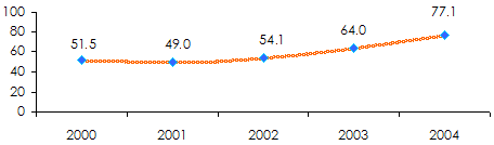 in millions USD| 2000 | 2001 | 2002 | 2003 | 2004 | |