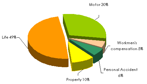 Premiums' split by class of business in 2006