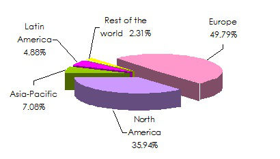 Breakdown in % of the 2011 life insurance turnover per geographic zone