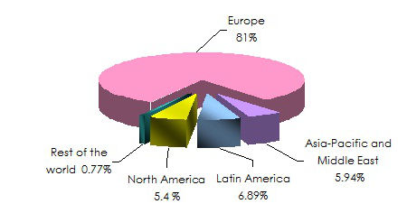 Breakdown in % of the 2011 non life insurance turnover per geographic zone