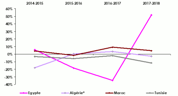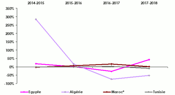 Algérie* | -18,22% | 0,32% | 3,29% | -2,83% |