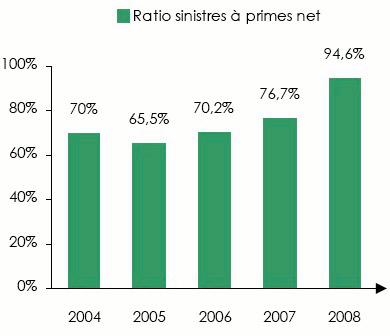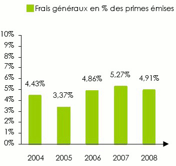 Evolution du ratio sinistres à primes 2004-2008 | Evolution des frais généraux 2004-2008 | |