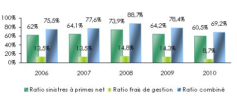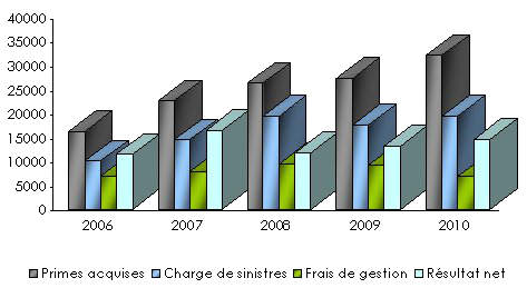 Au cours de la période 2006-2010, Al Dhafra affiche d’excellents indicateurs techniques. Le rapport sinistres à primes de 62% en 2006, n’est que de 60,5% en 2010.