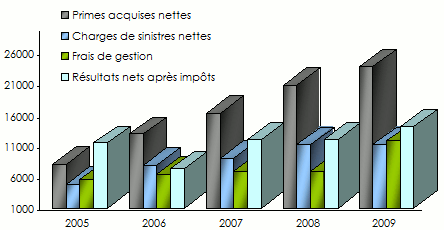 en USD| Assurance | 2005 | 2006 | 2007 | 2008 | 2009 | Part 2009 | Evolution 2008/09 |