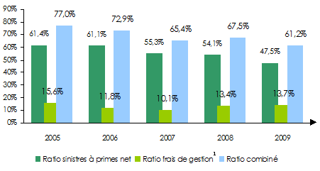 Ratio sinistres à primes net | 61,4% | 61,1% | 55,3% | 54,1% | 47,5% |