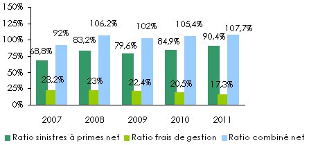 Ratio combiné net | 92% | 106,2% | 102% | 105,4% | 107,7% |