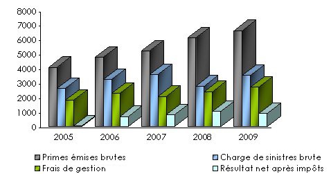 Malgré l’augmentation de sa sinistralité en 2009, la société réalise un excellent résultat grâce à de solides produits financiers. Estimés à près de 1,4 million USD, ces derniers représentent 21,5% des primes émises de l’exercice.