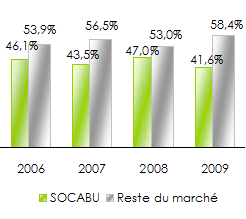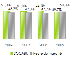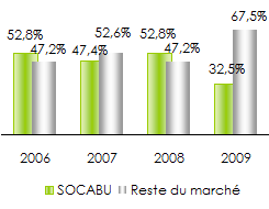 Parts de marché de la SOCABU au Burundi: période 2006-2009