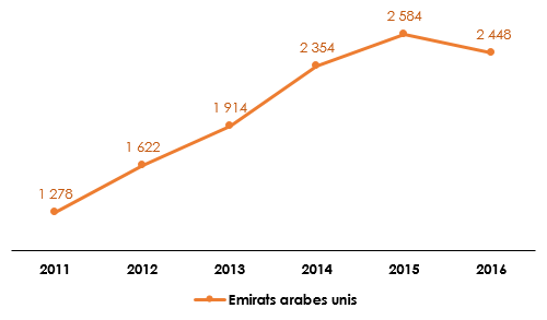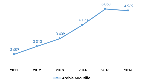 Arabie Saoudite vs Emirats arabes unis : évolution du chiffre d’affaires (2011-2016)
