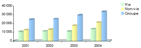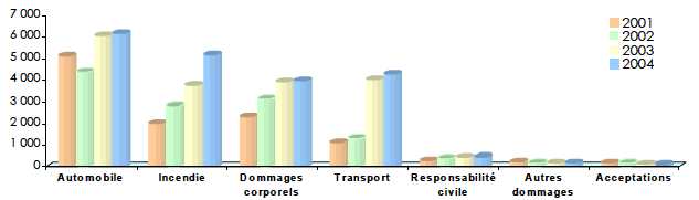 Évolution du chiffre d’affaires non-vie par branche 2001-2004
