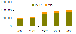 - Densité d’assurance (2004): 72,4 USD