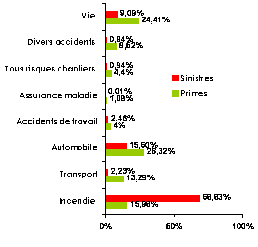 Répartition des primes et sinistres payés