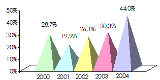 Evolution de la production: 2000-2004
