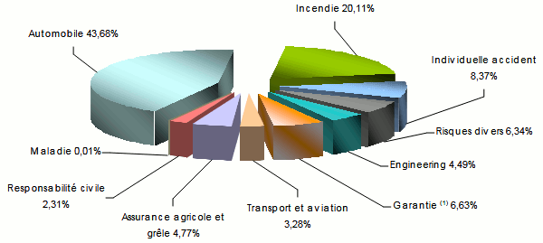 Répartition du chiffre d’affaires non vie par branche en 2017