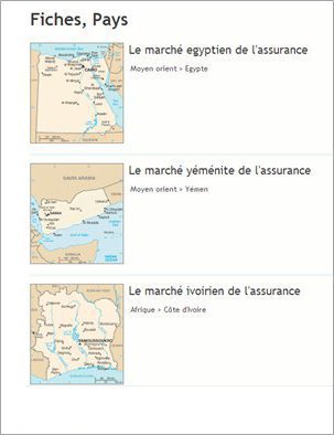 Accès aux fiches pays et compagnie à travers les rubriques thématiques