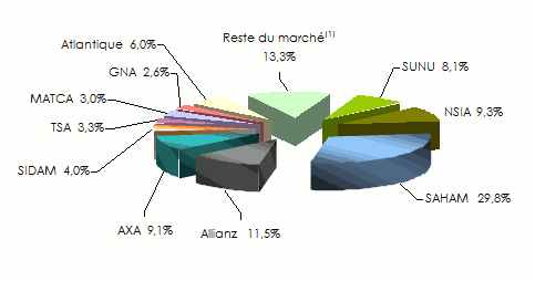 Marché de l'assurance non vie en Côte d'Ivoire : parts de marché 2016 des dix premières compagnies