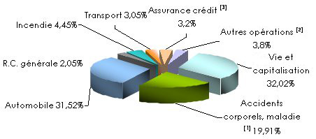 1 Y compris accidents du travail 2 Y compris risques techniques et acceptations de réassurance 3 Y compris assistance et assurance caution Classement 2011 par compagnie et par branche