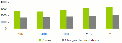 Evolution de la charge de prestations par branche non vie: 2009-2013