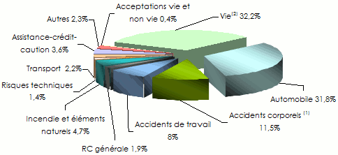 (1) y compris maladie et maternité (2) y compris assurances individuelles, assurances de groupes, assurances populaires, capitalisation et contrats à capital variable