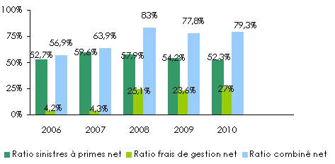 Evolution des sinistres nets par branche: 2006-2010