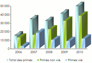 en USD| Vie | Non vie | Primes 2010 | |