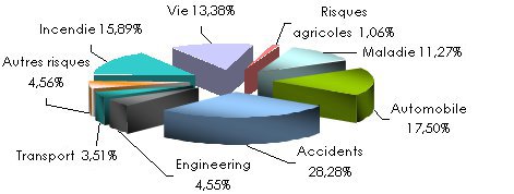 | Primes émises | Parts en % | Primes émises | Parts en % | Primes émises | Parts en % | Evolution 2007-2008 | |