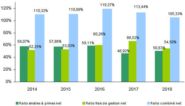 Warba Insurance: Ratio sinistres à primes net par branche non vie (2014-2018)